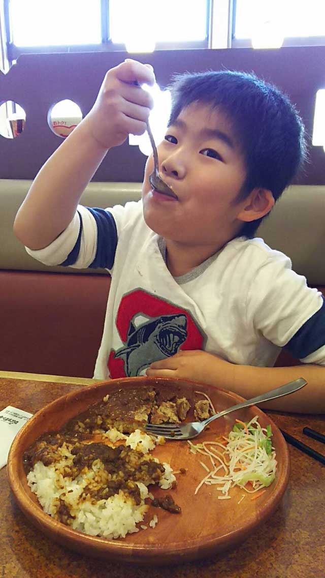 順調にオトウサンと同じ道を歩んでくれていますw。どんな大きな皿でも、コイツにかかればペロリ。