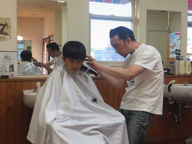 ユウちゃんの「お抱え床屋」w。生まれた時から、ずっと浜田の「チョキちゃん」に、お世話になってます。