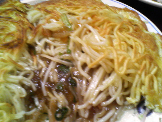 揚げた麺のパリパリと餡かけが・・・