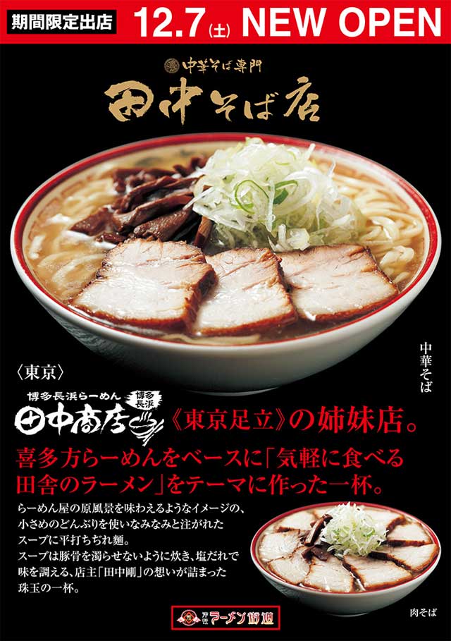 青森出身のトンコツラーメンで有名な「田中商店」の店主さんが、青森煮干し中華そばを提供している